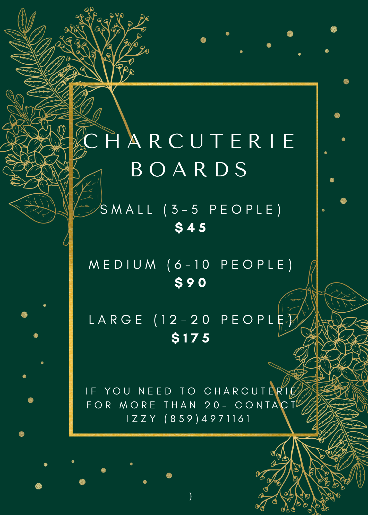 If you need to place an order for SAME DAY pickup or if pickup time must be outside the pickup window, please text Elizabeth (Izzy) directly at (859) 497-1161.